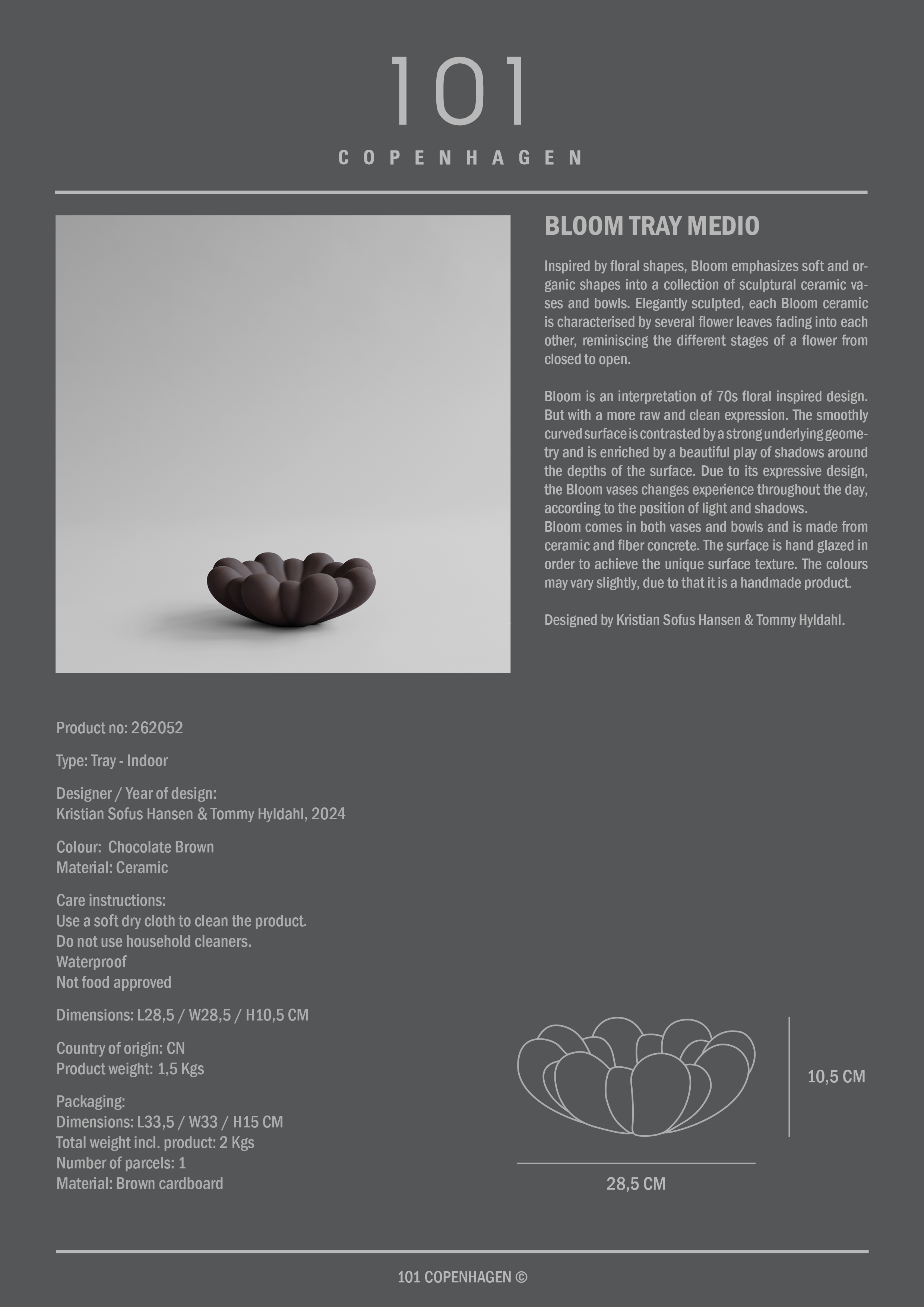Geïnspireerd door de organische vormen van bloemen, ontvouwt de Bloom-collectie zich tot een serie sculpturale vazen en schalen met zachte, vloeiende lijnen. Elk object is ontworpen met lagen bloemblaadjes die in elkaar overlopen, waardoor een gevoel van beweging ontstaat van gesloten knop tot volle bloei. De collectie is geïnspireerd op de bloemendesigns uit de jaren 70, maar met een rauwere en ingetogener uitstraling, waarbij het gladde oppervlak contrasteert met een heldere, onderliggende geometrie. Het licht speelt met de diepte van de vorm, waardoor Bloom een levendige uitstraling krijgt die van karakter verandert met het wisselende licht en de schaduwen van de dag.