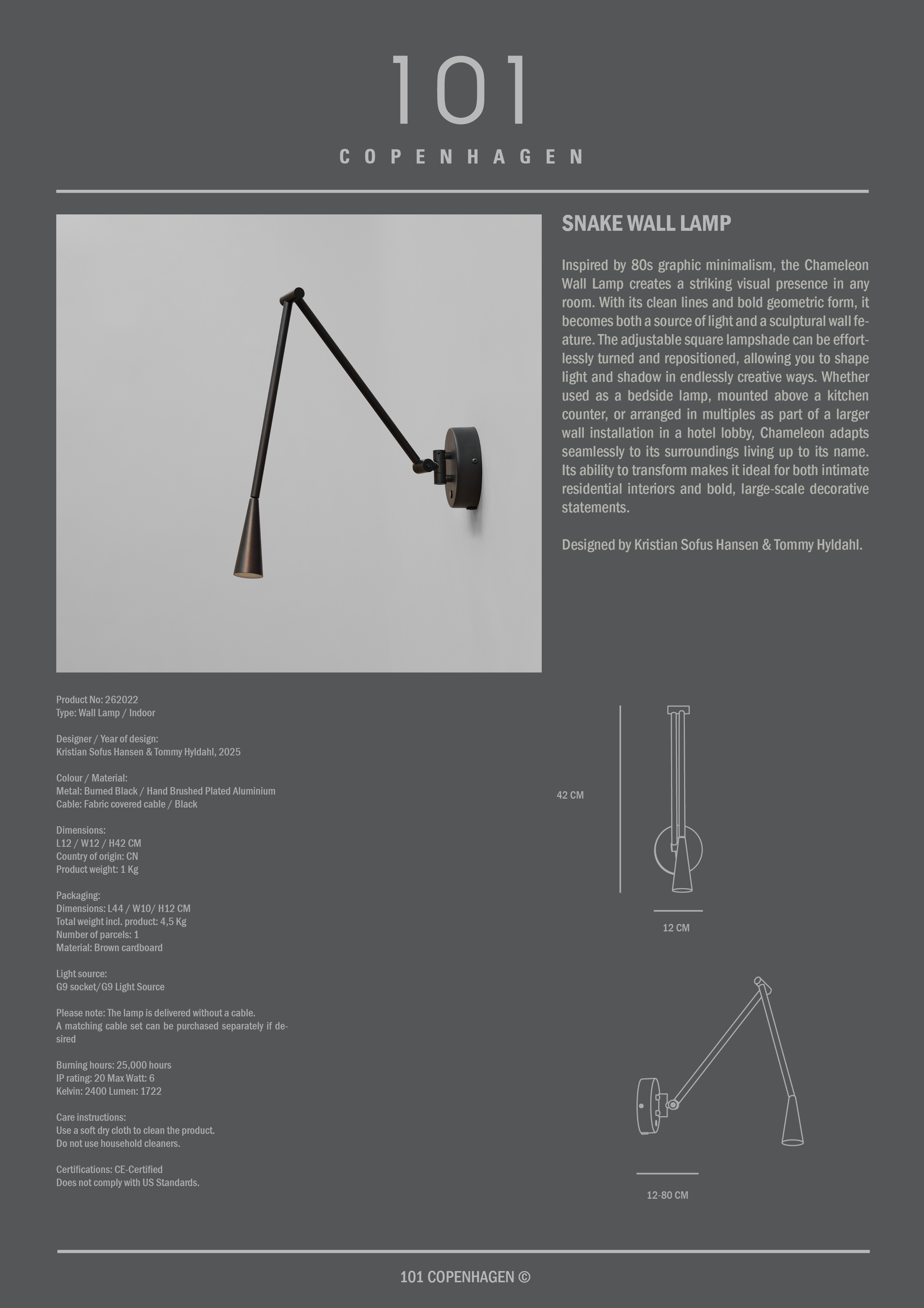 101 Kopenhagen Wandlamp Verbrand Zwart