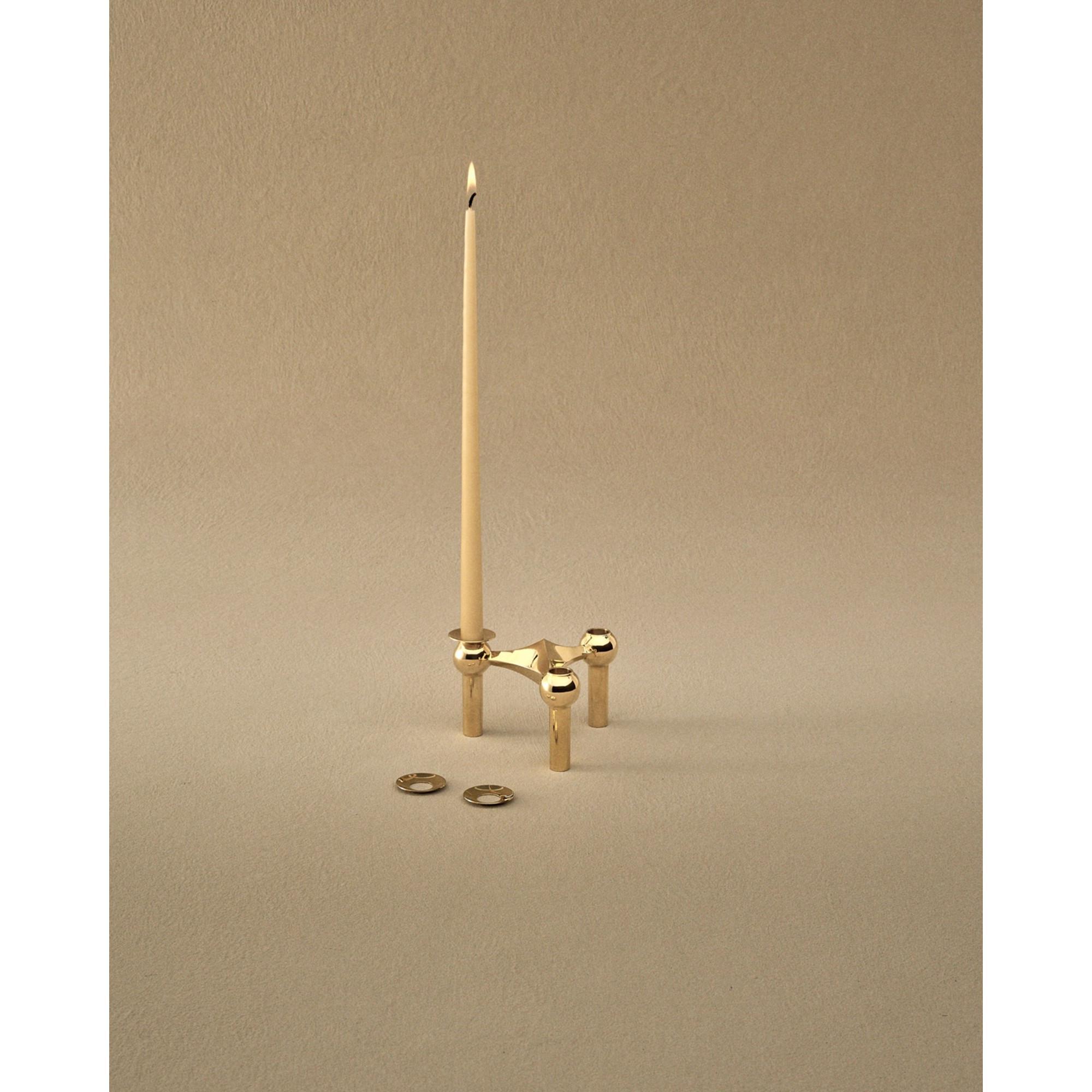 De STOFF Nagel kaarsenhouder is het discrete maar cruciale detail dat de iconische kaarsenstandaards compleet maakt en de arrangementen een meer doordacht karakter geeft. Hij fungeert als een rustige tussenpersoon tussen licht en vorm, omlijst de vlam, vangt kaarsvet op en houdt oppervlakken schoon. De kaarsenhouder is bedoeld als geplaatst onderdeel van het geheel, waar niets willekeurig lijkt en waar zelfs de kleinste elementen bijdragen aan de beleving. Wanneer de kaarsen opbranden, behouden de arrangementen hun strakke lijnen en rustige uitstraling, waardoor de kaarsenstandaards steeds opnieuw gebruikt kunnen worden zonder dat het geheel eronder lijdt. Het resultaat is een arrangement dat evenwichtig, weloverwogen en visueel sterk oogt, zelfs bij veelvuldig gebruik.