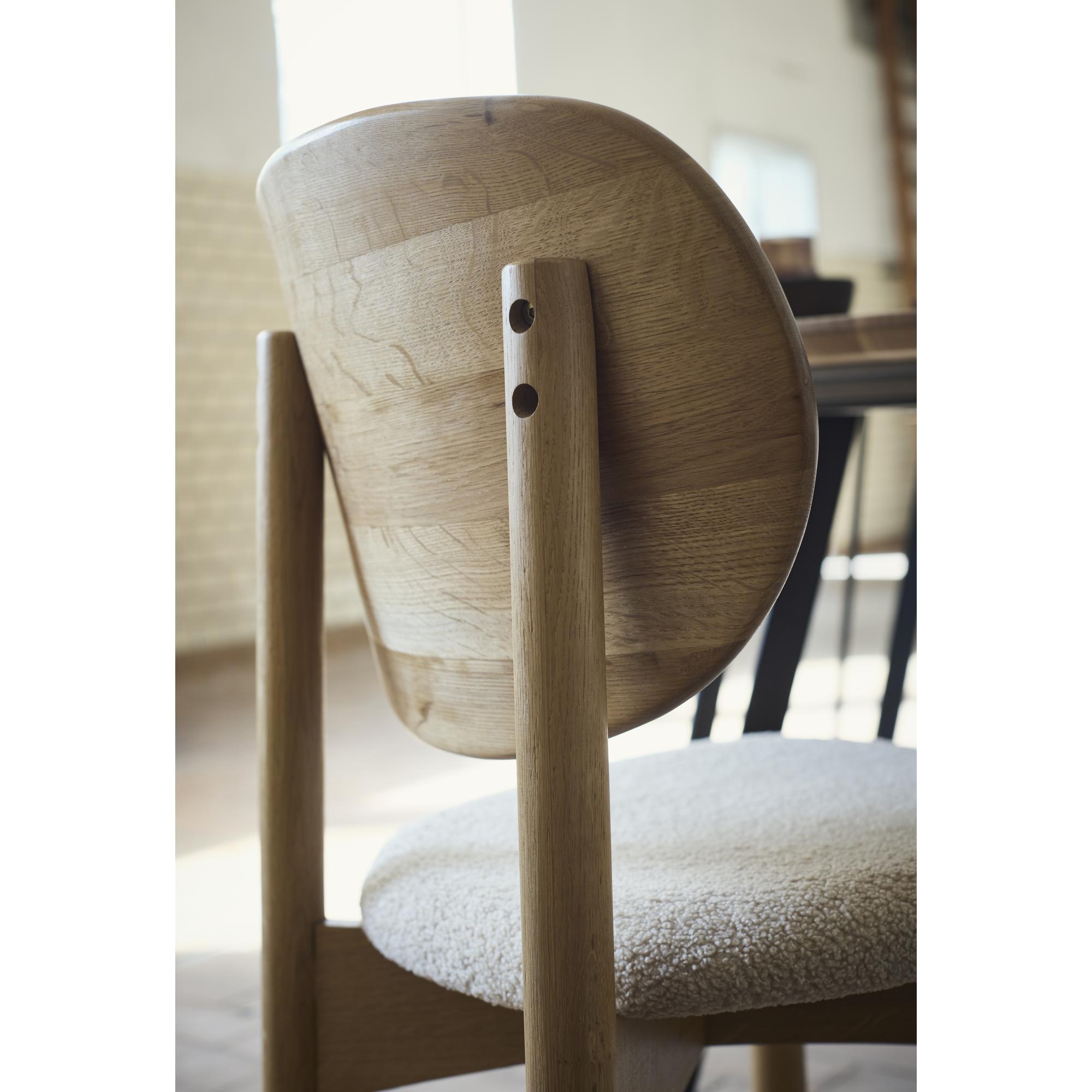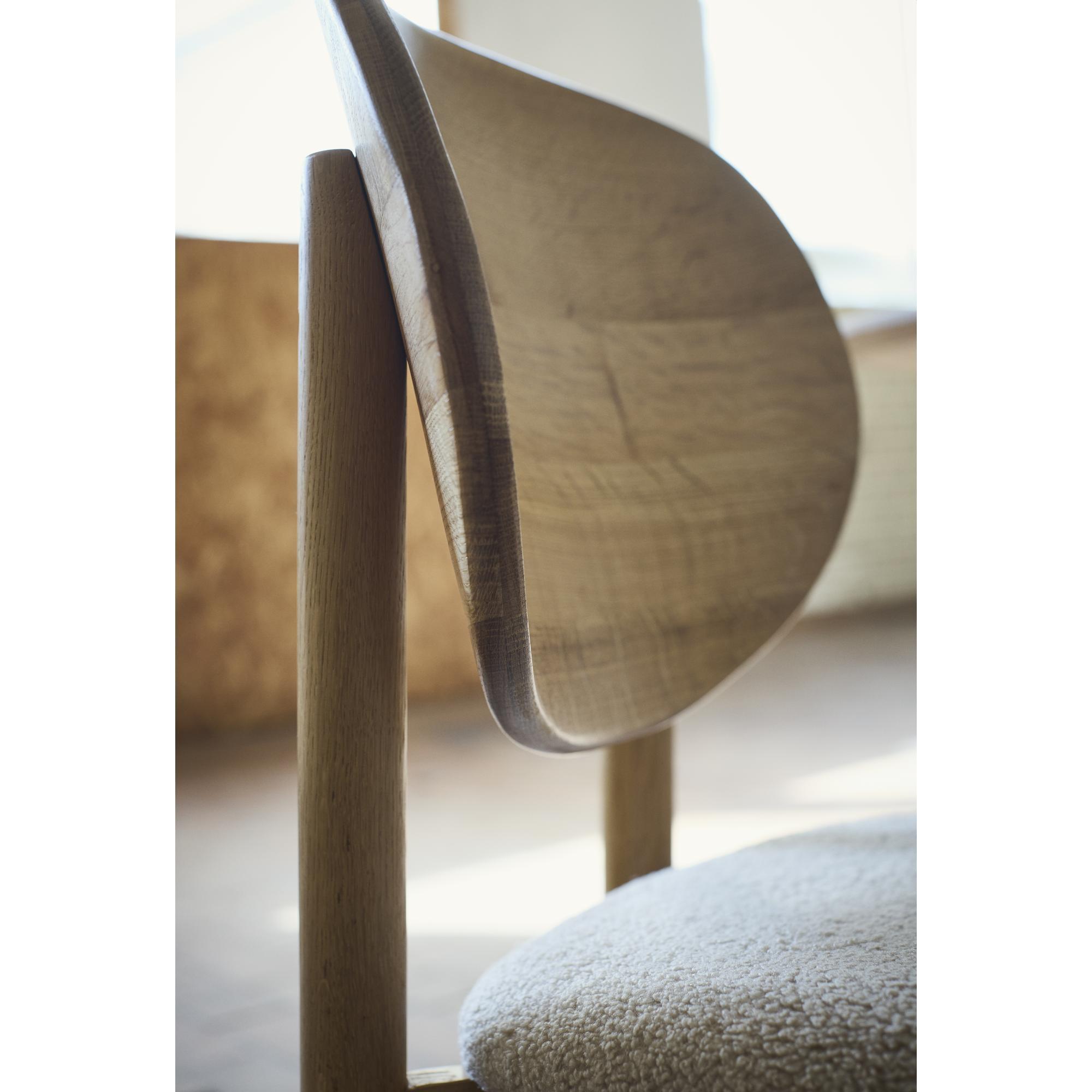 De Oka-serie van Muub is ontworpen met de nadruk op comfort, natuurlijkheid en visuele lichtheid. De organische vorm van de stoel creëert een uitnodigende zitervaring die perfect past in zowel moderne als klassieke eetkamers. De serie kenmerkt zich door een harmonieus silhouet, waarbij zachte lijnen gecombineerd worden met een robuuste constructie, wat resulteert in een prachtige balans tussen esthetiek en functionaliteit. De Oka-stoel oogt elegant en tijdloos, en de structurele details getuigen van vakmanschap en een zorgvuldige materiaalkeuze. De serie combineert ideaal met hout, textiel en keramiek en is de perfecte keuze voor wie een warme, persoonlijke en harmonieuze eetkamer wil creëren, waar comfort en stijl elkaar niet in de weg staan. Oka brengt een natuurlijke authenticiteit in de ruimte en dankzij de rustige vormgeving is de stoel gemakkelijk te integreren in diverse interieurs.