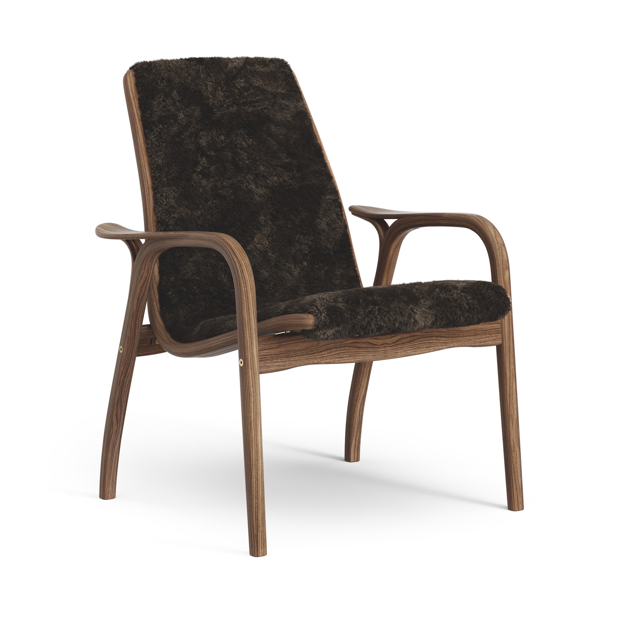 Swedese Laminaat Fauteuil Gelakt Walnoot/ Espresso/Schapenvacht