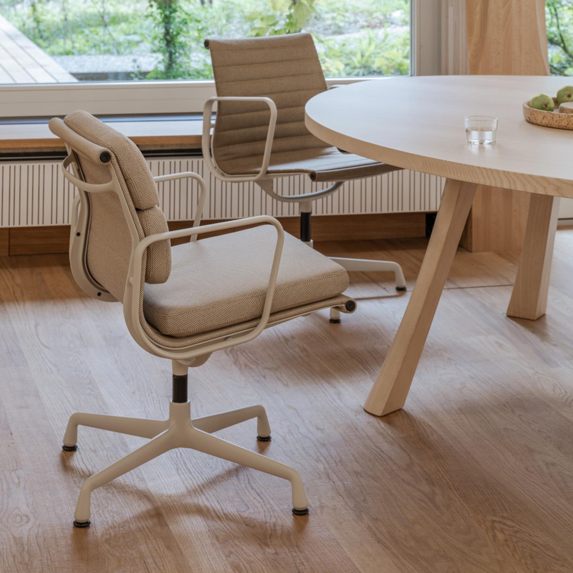 De Vitra Soft Pad EA 208 is een verfijnde bureau- en vergaderstoel die elegante lijnen combineert met een kenmerkend zacht zitcomfort. De serie is gebaseerd op de Eames Aluminium Chair-familie en is voorzien van extra vulling in de vorm van zachte kussens, waardoor de stoel een uitnodigende en huiselijke uitstraling krijgt. De EA 208 is bijzonder geschikt voor vergaderruimtes, werkplekken en lounges, waar comfort en exclusiviteit hand in hand gaan. De stoel staat op een stabiele draaibare lampenvoet en is gemaakt van hoogwaardige materialen, wat een lange levensduur en een moderne, professionele look garandeert. Een designklassieker die elke werkplek verfraait met zijn elegante en tijdloze design.